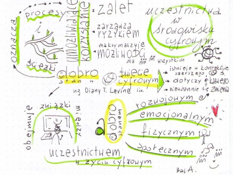 oznacza procesy i ścieżki dostępu do korzyści płynących z uczestnictwa cyfrowego w sposób, który pozwala zarządzać ryzykiem i maksymalizować szanse dla nas wszystkich dobrostan. W świecie cyfrowym obejmuje relacje między uczestnictwem cyfrowym a dobrostanem rozwojowym, emocjonalnym. Dzieje się tak w to w kontekście szerszego świata. Dotyczy każdego zmienia się cały czas.