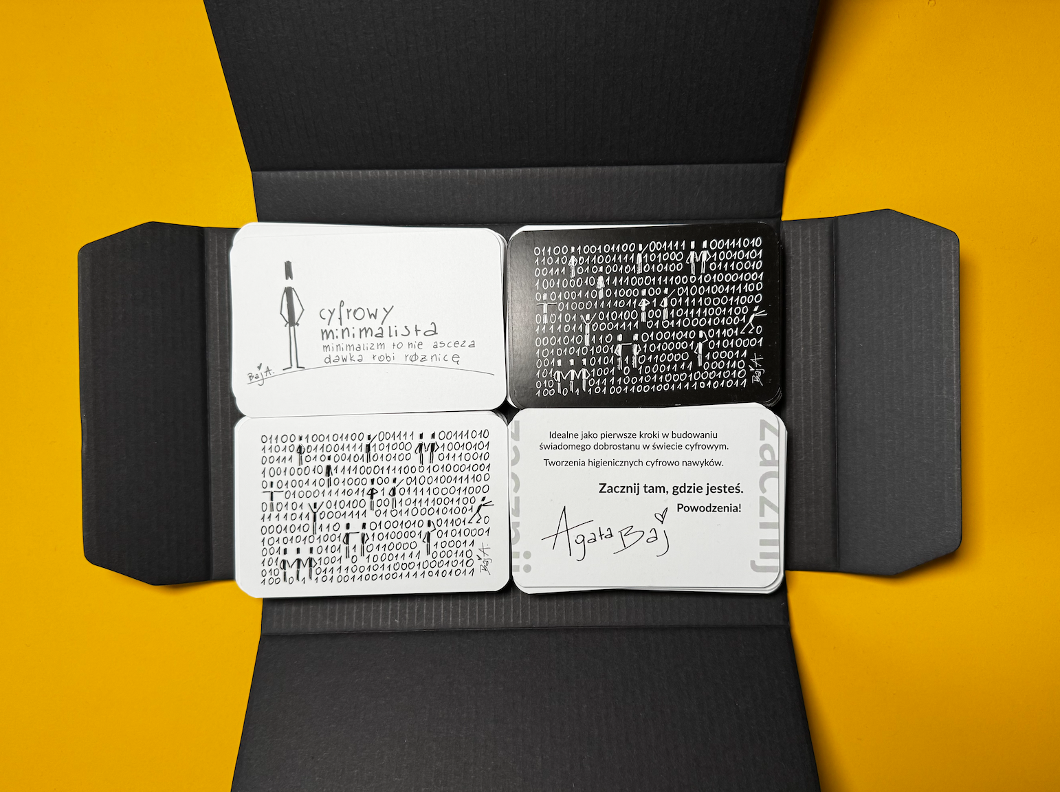Ja i ekrany. Karty higieniczne cyfrowo to efekt rocznych studiów oraz własnych doświadczeń funkcjonowania w świecie cyfrowym jako soloprzedsiębiorczyni.
